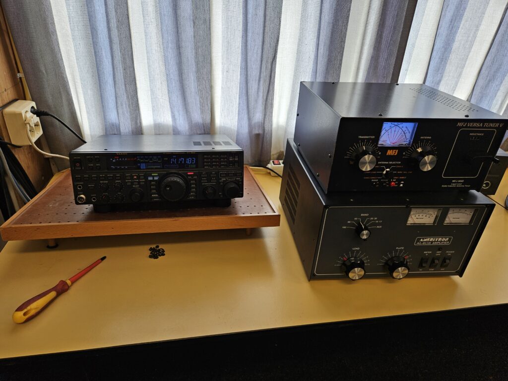 Om 13:00 gingen we los. We zaten met verschillende mensen achter de set, op verschillende banden en in CW en SSB.