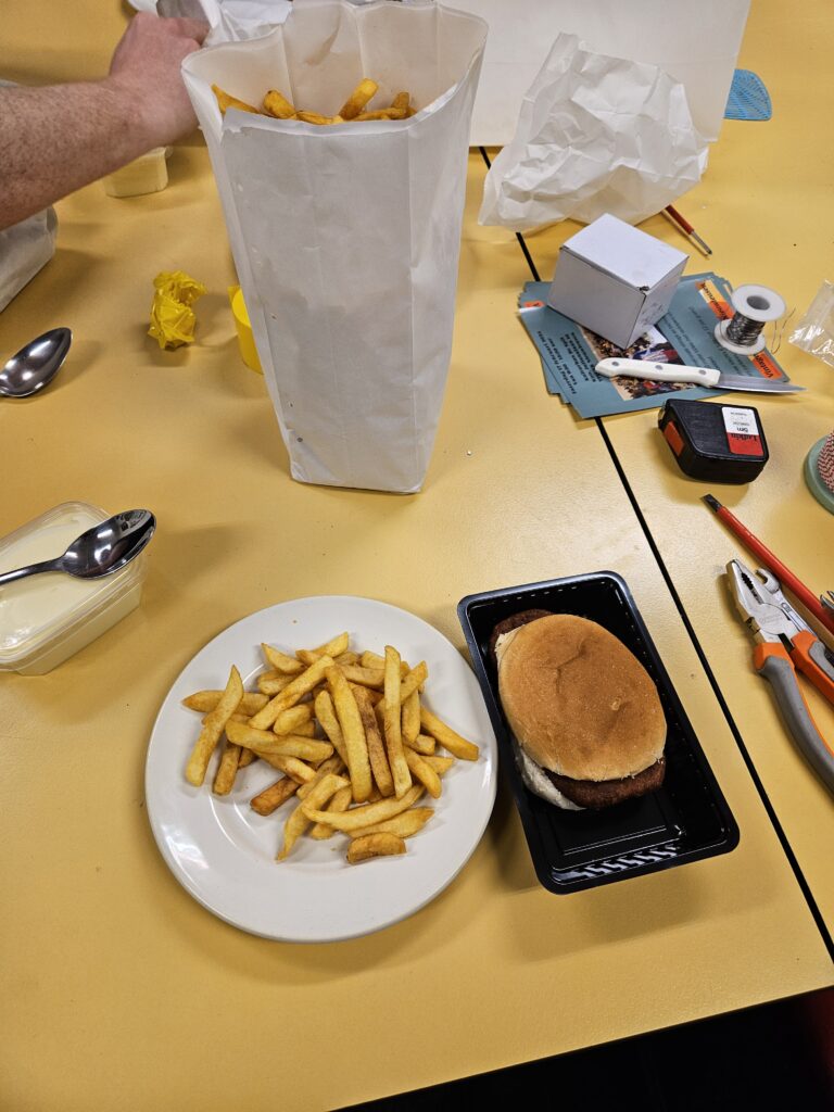 Rond 18:00 gingen we een hapje eten. Patat met een snackje.