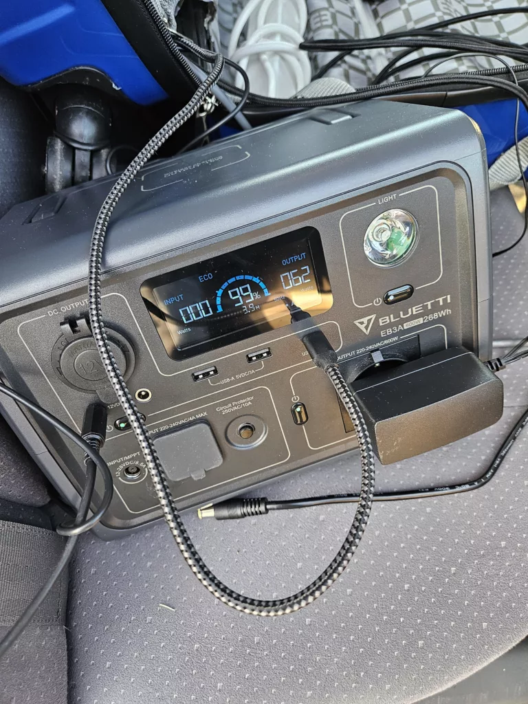 – Bluetti EB3A voor stroom.