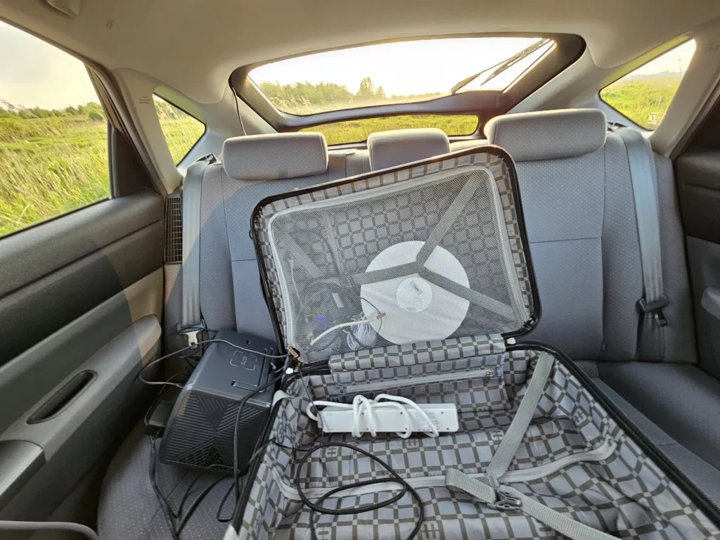 Dit is mijn netwerk-koffer. Hier heb ik alles (behalve Starlink) in zitten wat nodig is. De EB3A past hier ook in, maar dan kan hij de warmte niet kwijt.