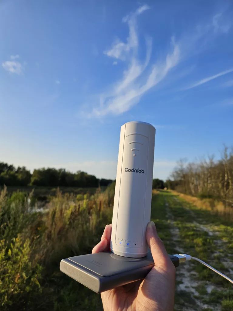 Aan het eind van de test heb ik de ontvanger boven mijn hoofd gehouden, wat de snelheid verhoogde.